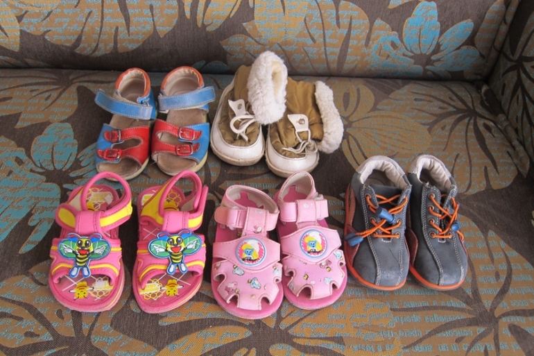 Также продаю другую детскую обувь р. 22-24: б/у сандали, ботинки осение и НОВЫЕ зимние сапоги и красивые кожаные бежево-золотистые сандали. Еще продаю шапки демисезонные и зимние. Фото по запросу.