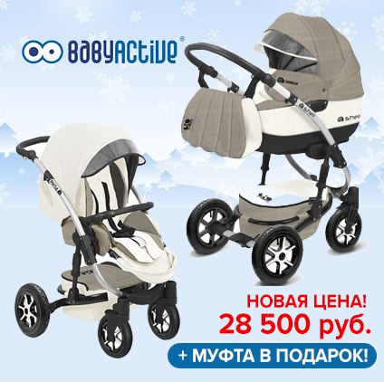 Только до 30.11 к коляске BabyActive Shell-Eko дарим муфту для рук!