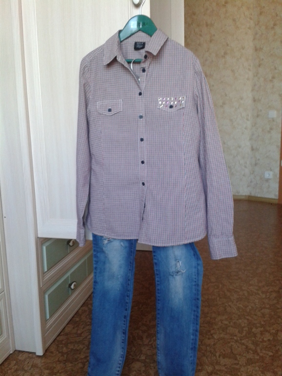 6. Рубашка в клетку Sela. Плотный хлопок высокого качества, идеально сидит на фигуре. Рост 164 см. Цена 490 руб.