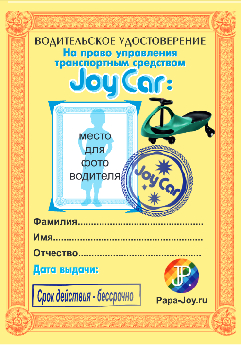-в комплекте в подарок детские водительские права и комплект наклеек на машинку