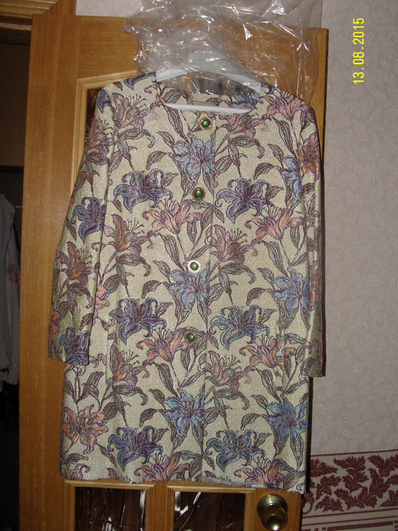 Пристрою жакетик Лента (осень 14) 42 размер. Мне на параметры 84-67-89 сел хорошо, только при росте 158 сидит не на месте, нужно выше 164. Жакет совершенно новый в упаковке все бирки на месте, только померила и обратно в пакетик запаковала.