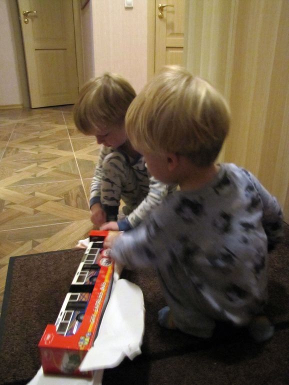 Саша так обрадовался новому вагону и машинисту (а еще одного брио-человечка дети давно просили, у нас их 5, и поровну разделить ну никак не получалось )))), что больше его уже ничего не интересовало. Пришлось еще раз напоминать, что случилось, куда надо идти и что делать :)