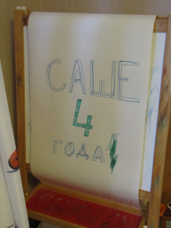 А задание на мольберте было простое - обвести буквы. Костя тоже активно участвовал - восклицательный знак раскрашен именно им.