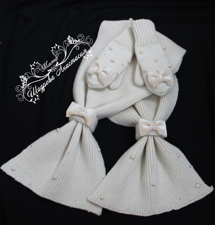 На шарфике и варежках повторяю узор или дизайн оформления шапочки.