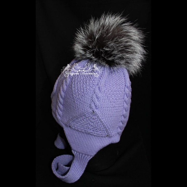 Шапочка в два слоя, ручная инкрустация стразами снежинка, помпон из финского енота альбиноса, сьемный. Размеры помпонов даны по опуши, не по иглам. Цена 2500 руб.