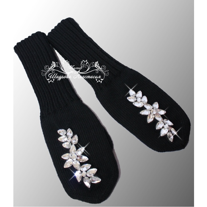 Варежки двойные без шва по ручке, ручная инкрустация стразами около 160 страз. 1500 руб