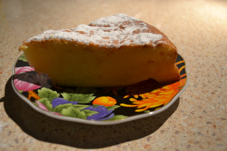 вот он целиком, отрезала кусочек . но потом переборола себя я же худеЮЮю , и стала есть кукурузу.но малюсенький все таки откусила, и правда вкусный..