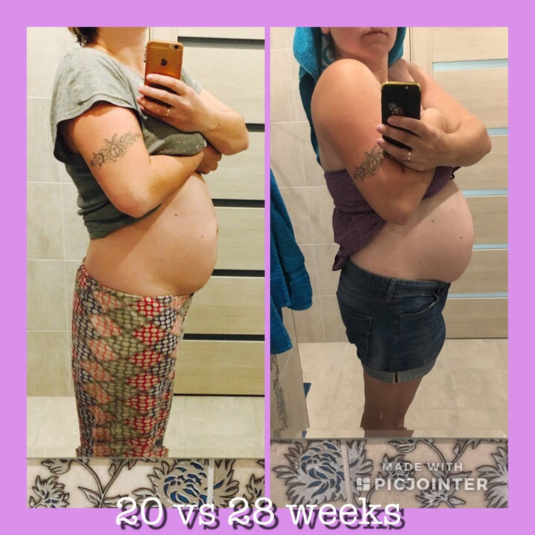Чтото совсем нет желания писать, жара меня удручает. Из приятного это то что малыш начал икать, поднялся повыше и отстал от моей шейки, я наконецто могу передвигаться без бандажа. А еще я наконецто вернулась за руль, года 3 не ездила. Я рада. Завтра сдаю кровь на антитела и там если все хорошо то укольчик. Проблема в том что мне после 2 родов в роддоме забыли поставить укол иммуноглобулина, так немного стремно, дети пока оба +. Ну и для соавнения фото. Подрос барабанчик? Мне кажется совсем чуточку