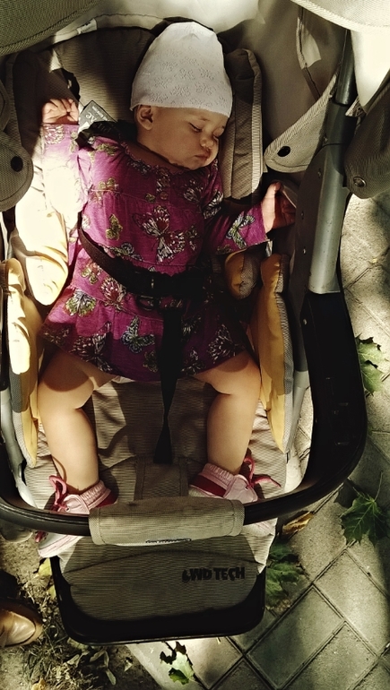 Вчера и сегодня гуляли по 4 часа. В Киеве вчера было +32, сегодня + 28. Хорошо на ГВ. Грудь доступна в любой момент, благо погода позволяет. А как будем гулять, когда плхолодает не представляю. Мы ж соску не сосем.