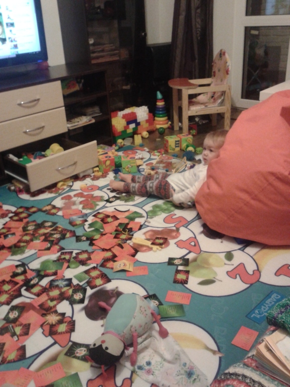 Поздравляю с зубиком!) На предпоследней фотке - это карточки рассыпаны?))) Их же собирать потом надо!))) Мой тоже все вытряхивает и расскладывает, а я собираю и собираю)))) Фотки отличные!) Алиса - красотка!)