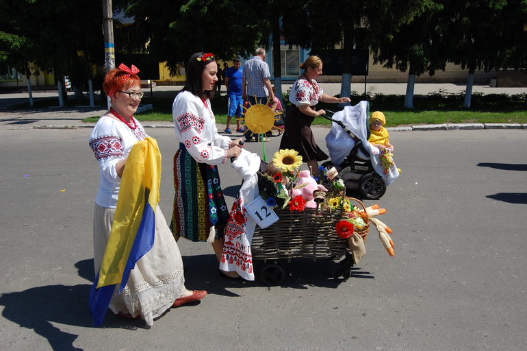 Алиса: от года до двухГостили мы с Алисой у бабушки с дедушкой целых 2 месяца. В одну из прогулок к нам подошла женщина и предложила поучаствовать в параде колясок ко Дню защиты детей. Условие единственное - тематически украсить коляску и ребёночка. Вот что у нас получилось: