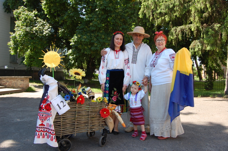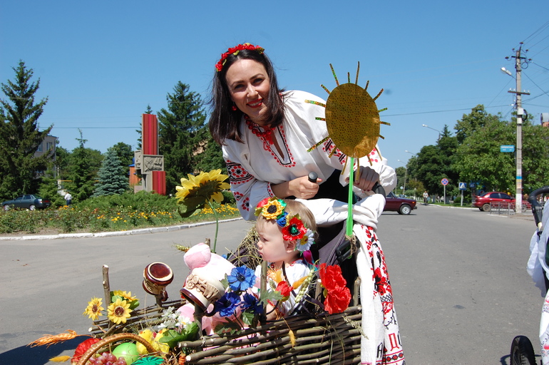 Наша чико преобразилась )) Дедушка сделал тынок, намостили сена, впереди прикрепили корзину с овощами, украсили всё маками/подсолнухами/васильками/ромашками/колосками, вместо глечиків у нас глиняные чашки,солнышко приделали, не поверите, на мухобойку )) ну и в завершение наш свадебный рушнык.