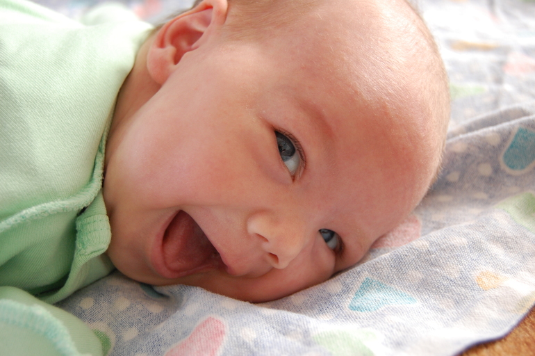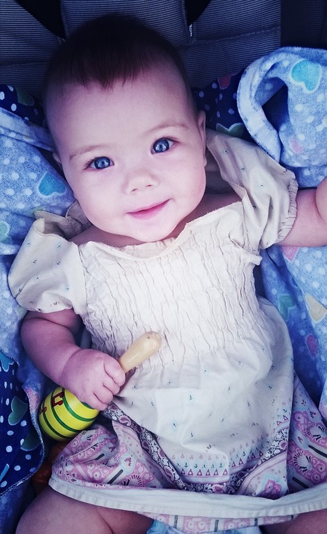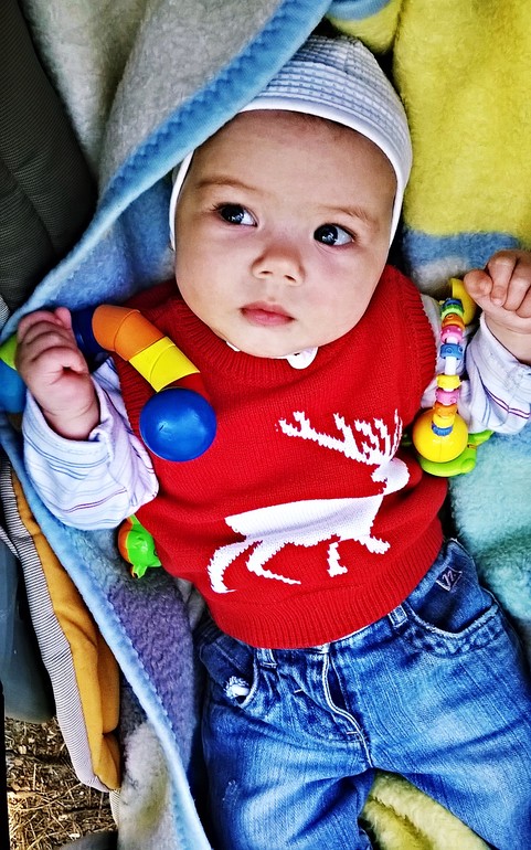 1. Начала реагировать на кошку - только видит кису, расплывается в улыбке. Если киса рискует и подходит ближе, пытается гладить, но получается пока только хватать.