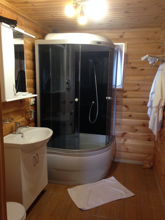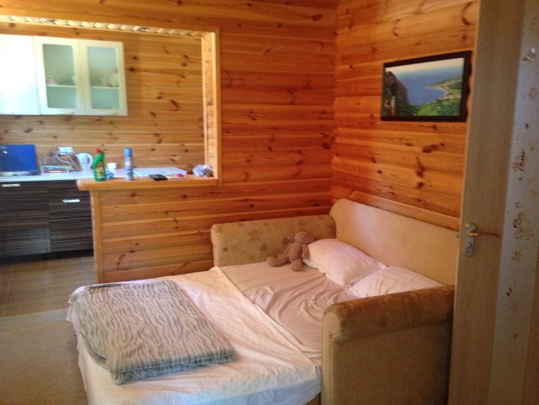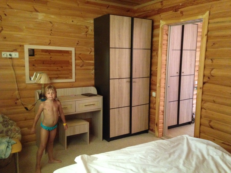 Это старые люксы, есть еще новые, они больше по площади и с новым современным ремонтом. Меня наш номер вполне устраивал: две комнаты, кухонный уголок, душевая кабина. И замечательный запах дерева в номере.