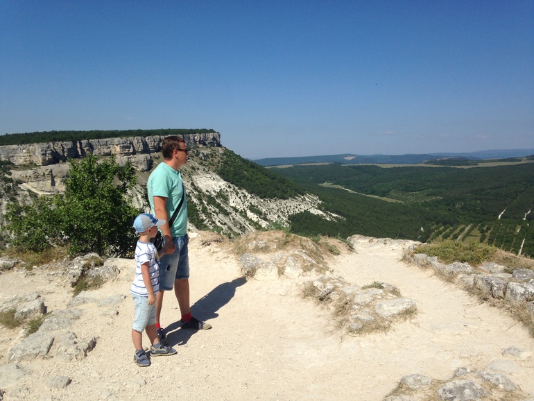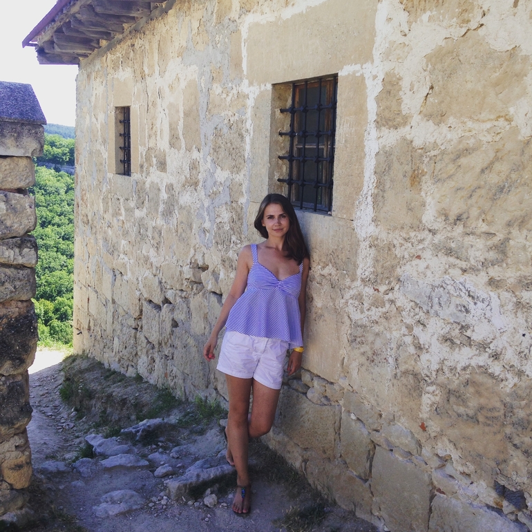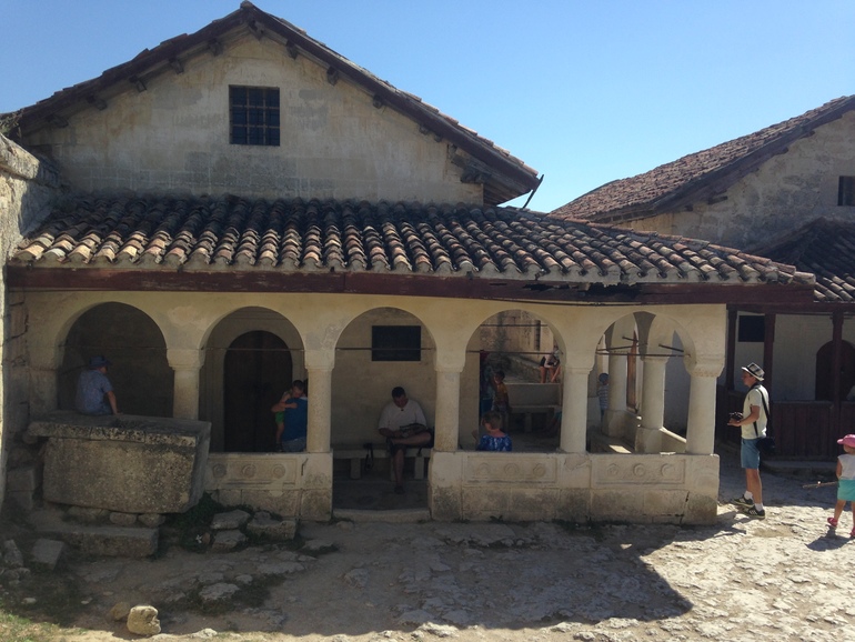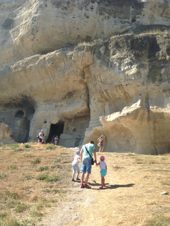 и в пещерный город Чуфут-Кале. Вверх поднимались на "джипе", пешком решили не идти. Экстрим еще тот, я чуть с ума не сошла когда водила подъехал к краю пропасти, типа посмотрите какие виды, думала убью его