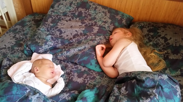 Вторая дома. Днем укладывала Еву спать. И позвола с нами Лизу. Мол, поспим все вместе. Лиза сказала, что хочет смотреть мультики. Ладно. Я ушла в спальню. Минут через 20 выхожу, а Лиза в своей комнате спит в своей кроватке, укрытая одеялом. Да! Это круто, что ребенок сам лег спать. Но для меня она мой маленький ребенок. Которого я тоже люблю укладывать. Мы читаем, смеемся, я ее глажу и целую...это ритуал. А тут вот так. Ребенок как будто брошеный мной(((