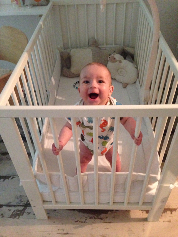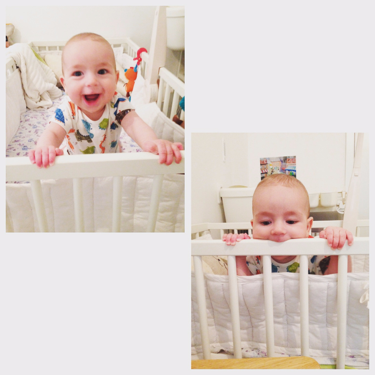 С 5 месяцев мы поменяли в коляске блок с люльки на прогулочный, опустили кроватку.