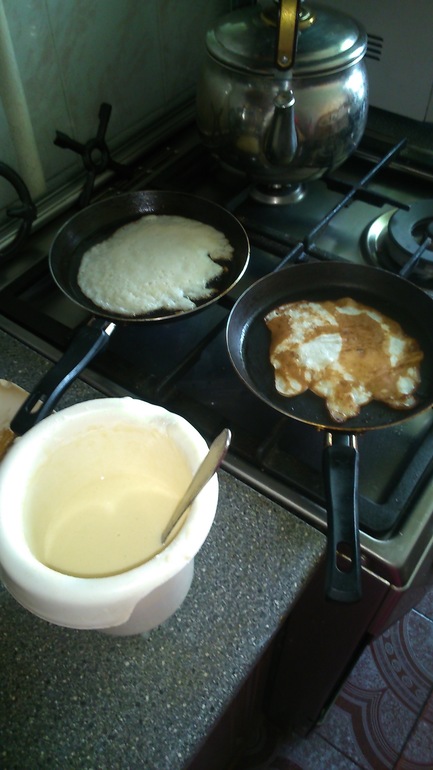 Мы после садика и обеденного сна, приготовили тесто для блинов, Лиза била яйца и сеяла муку. А мама Наташа, напекла блинчиков. Потом дружно позвали Бабушку и Дедушку, и попили вместе чай.