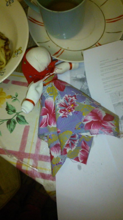 Пока Лиза смотрела мультики, я делала куклу Масленицу. Участия ребенок не хотел принимать, просто смотрела. Вот такая она у нас красавица.