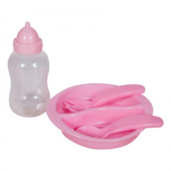 Мы покупали её от моих родителей в ДМ за 2800 примерно. В комплект входит пупс и сумочка, в которой: современная такая тарелочка, ложка и вилка, соска и бутылочка. Пупс маленький, не сидит без опоры.