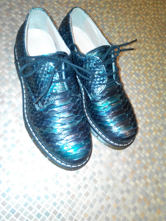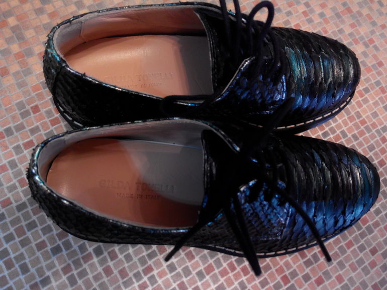 Продаю шикарные туфли Gilda Tonelli,оригинал размер 36. Мне малы на 23,5 см. Думаю подойдут на меньшую ногу. Цвет изумрудный, рептилия. Подошва резиновая. Нат. кожи потрясяющей выделки! Обошлись в 8500 р. Отдам за 4000 р. +почта в подарок.