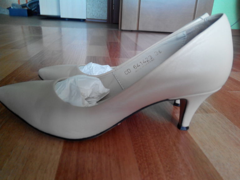Пристрою туфли бежевые нат.кожа снаружи и внутри, размер 36.По стельке подойдут на 24 см.Мне большеваты на мою стельку 23,5 см.Нога у меня средней полноты.Высота каблука 7 см. Цена 3700 руб.Дешевле,чем обошлись(купила за 4700 руб.).