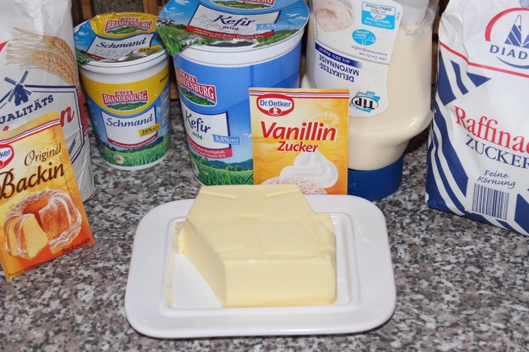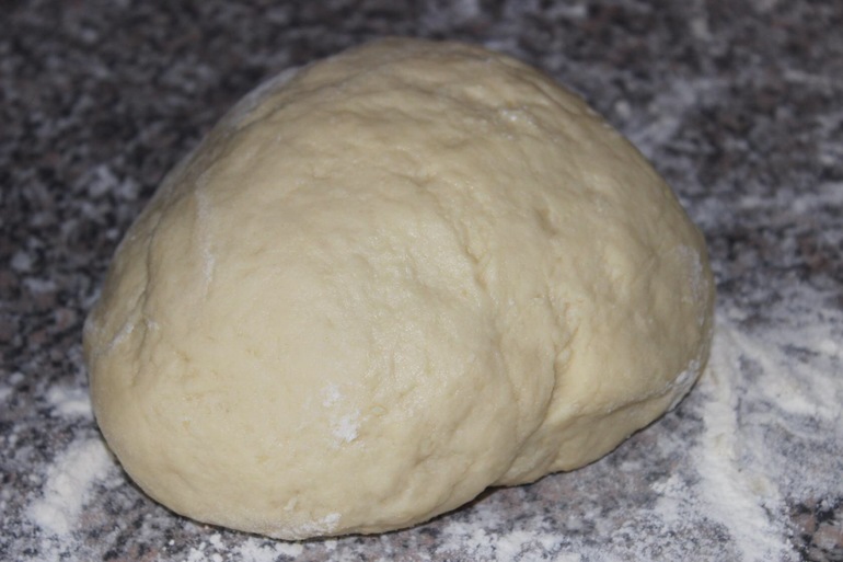 Затем добавляем сметану, кефир, майонез, сахар, соду, постепенно подсыпаем оставшуюся муку, так как её может уйти меньше или больше, тесто должно быть мягким, как только оно перестаёт сильно липнуть- тесто готово.
