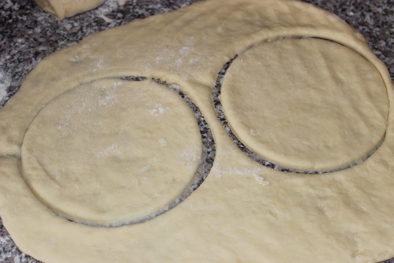 Раскатываем пласт и вырезаем наши будущие коржики, толщина около 1 см
