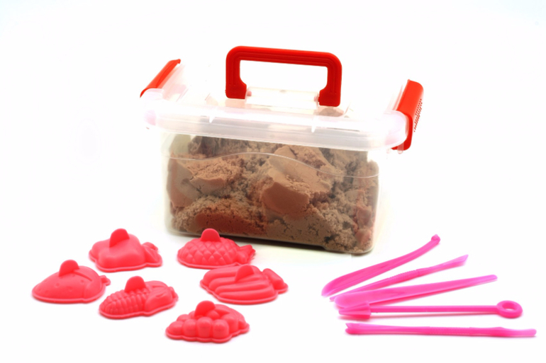 В набор входит: песок кинетический 1кг, набор формочек (6шт) + набор инструментов для лепки. Упакован набор в удобный чемоданчик.