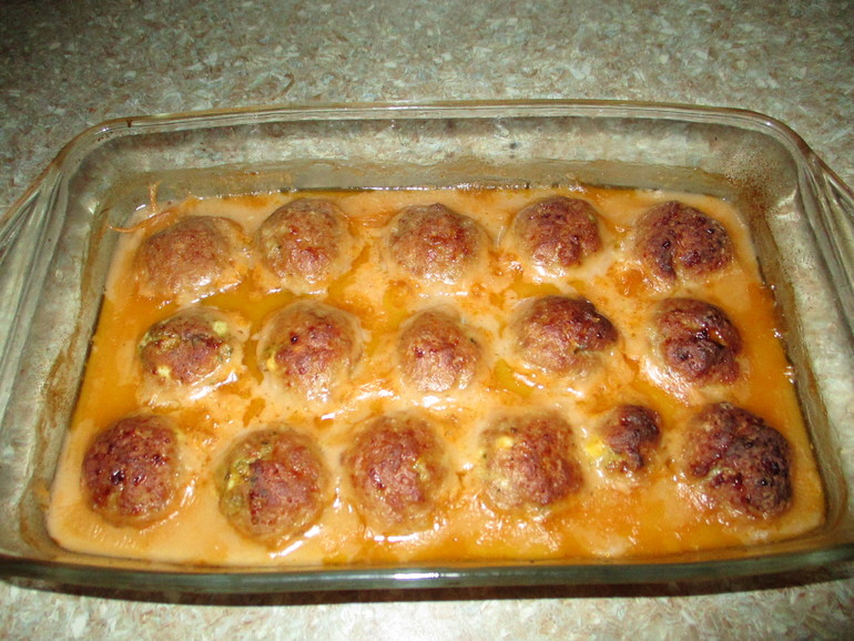 Залить этой смесью подрумяненые шарики и ещё в духовку мин на 15 , температуру сбавила до 160.