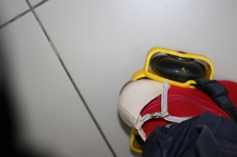 Отличный яркий комплект (удобно одевать, на высоте защитные качества, неубиваем!). Маркировка S, но мы использовали очень рано, на стройную девушку свою:))) Наколенники, налокотники, защита ладоней.