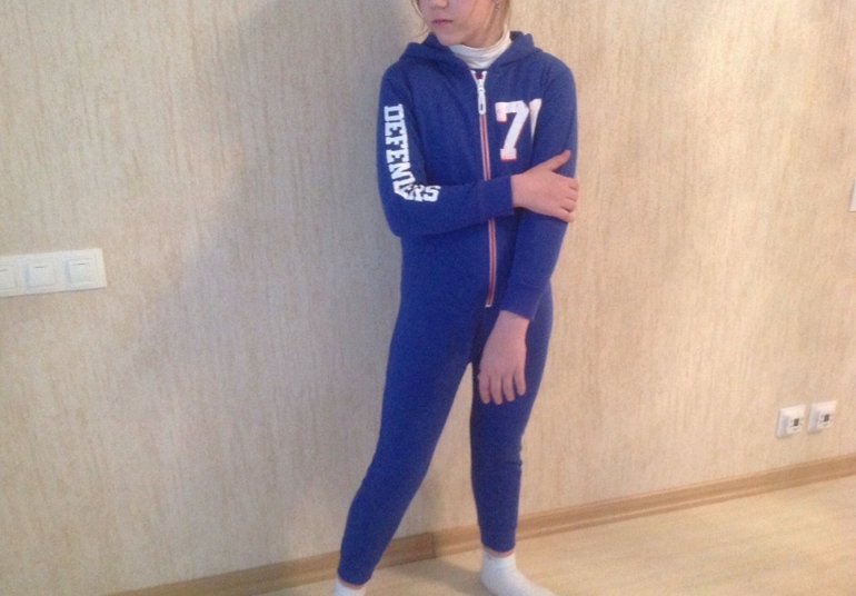 Привезен подругой из Европы. Нам безнадежно мал, хоть он и большемерит где-то до 135, просто дочь длинноногая у меня:))) Стоил дорого! Унисекс. На замочке. Надписи потертые такие:)) Длина от плеча 120 см. Состав: 60% хлопок, 40 - п/э.