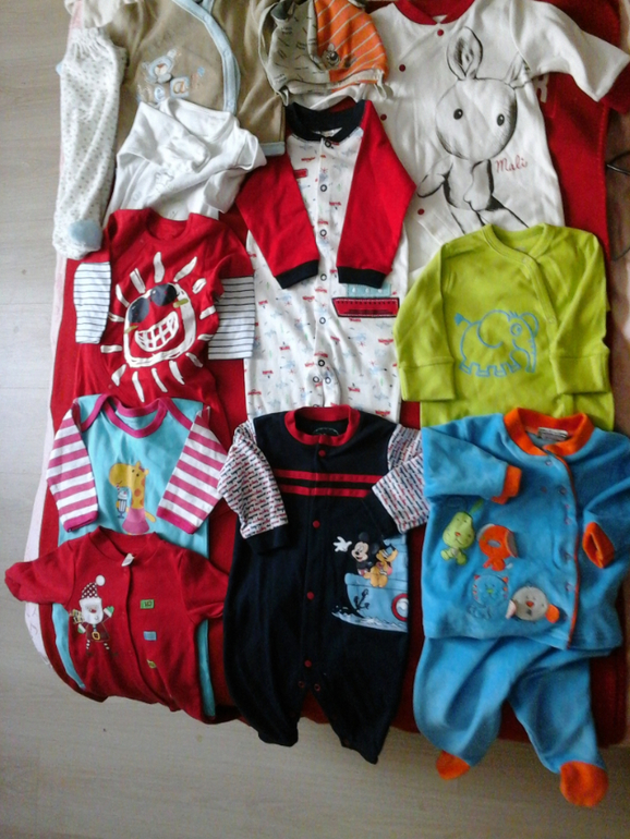 Все вещи покупались на каких либо распродажах и они все на разный возраст, примерно до года, конверт на самом деле один, а это все комбезы с ножками, серый до года, а фиолетовый после года))))Подружка просила сфоткать, что у нас есть из наследства))) И что ей нам отдавать после своего мальчика))))