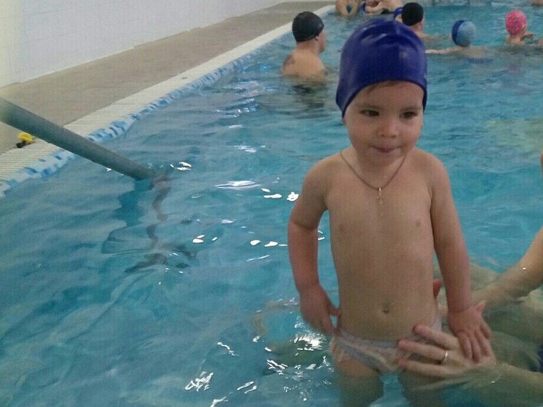 Сашуля любит воду во всех ее смыслах. Водохлеб еще тот,за день выпивает жидкости примерно 2-3 литра. Купаться тоже готова по три раза на день. Мы были в разных бассейнах нашего города (выбирали тот в который будем ходить постоянно) и во все она заходила визжа от восторга.