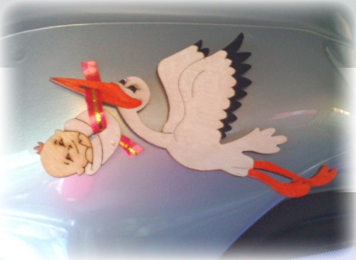 Ну а ещё чтоб Алёнка не подумала что я что-то забыла, там была иконка св.блж Матронушки Московской и взрыв эмоций-магнит с аистом и пупсом в клюве, который был сразу у меня конфискован и помещён в машину, говорит "пусть будет с нами везде, чтоб уже скорее:)))" а вот и фото этого очарования уже в салоне машины