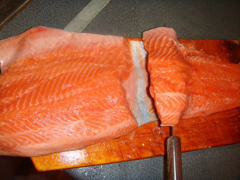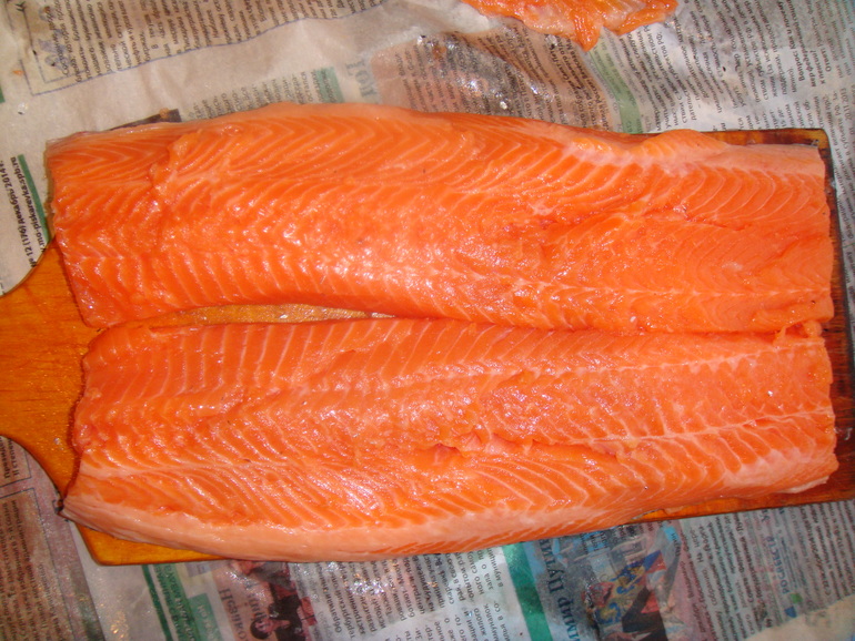 Можно делать из любой рыбы. Но у меня форель. Снять филе с кожи: