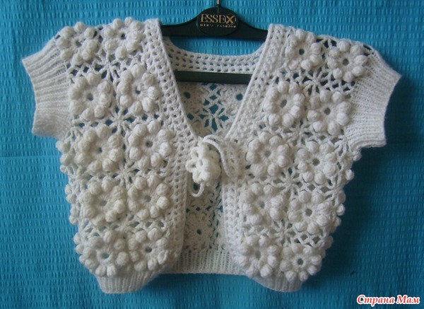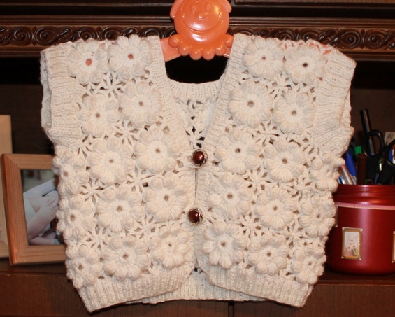 В самом деле, "всего-навсего" в феврале начала я вязать дочке этот жилетик, и -- о чудо! -- к сентябрю справилась таки :)