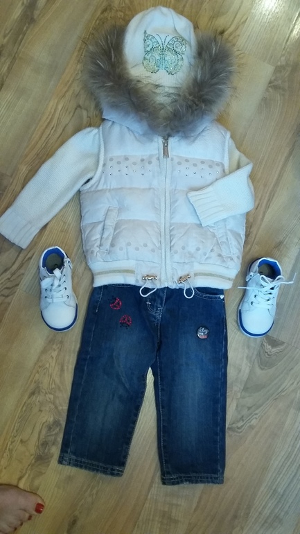 2. комплект с джинсовкой в сост.новой вещи рост 1 год. Стразы сваровски. Рукав меняется по длине. Италия baby muz. Цена 2400 р.ПРОДАН!