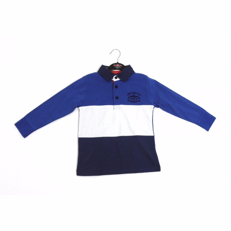 Футболка-поло фирмы George. Синяя с серым, с белым воротничком и отделкой, застегивается на 4 пуговички. Состав 100% хлопок, размер 4-5л (104-110), 5-6л(110-116), 6-7л(116-122), 520руб.