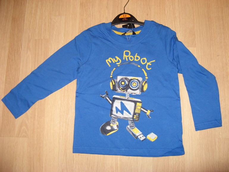 Кофточка с длинным рукавом фирмы t-a-o (Tape à l'oeil) Франция. ярко-синяя, впереди рисунок и надписи. 100% хлопок. Размер 6л (116), 350руб