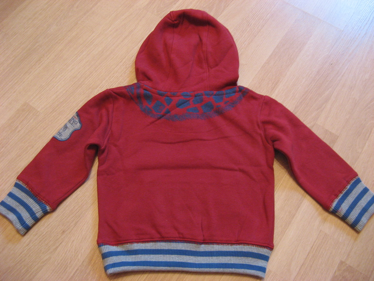 Кофта-худи с капюшоном фирмы E-BOUND. Красная, без начеса, плотный трикотаж петельками наружу. Впереди вышивка надписи, манжеты на рукавах , 2 кармана по бокам.Состав 60% хлопок, 40% полиэстер. размер 6л(116) 550руб.