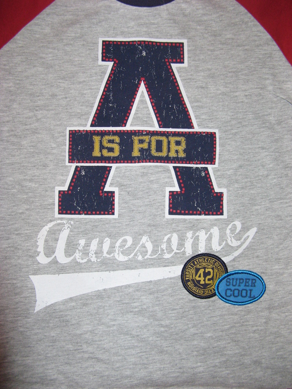 Футболка фирмы Adams. Серая с красными рукавами, контрастные строчки, впереди яркие буквы и рисунок. Состав 100% хлопок, размер 4года (104) , 5лет (рост 110), 6лет*(116). 300руб.