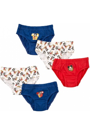 Трусы "Микки Маусы" фирмы Mothercare 5штук в комплекте. Cиние и красные с Микки Маусом впереди, белые с Микки Маусами по всей ткани. Состав 100% хлопок. р. 4-5л(104-110) 500руб