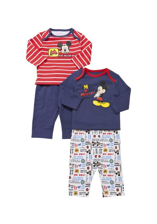Пижама с длинным рукавом фирмы F&F. Красная кофточка с ярким Микки Маусом + сине-фиолетовые штанишки и сине-фиолетовая кофточка Микки Маусом + штанишки с Микки Маусами по всем штанишкам. состав 100% хлопок .