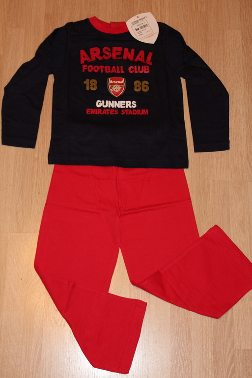 Пижама с длинным рукавом фирмы Arsenal (офицальный продукт футбольного клуба Арсенал). Темно-синяя кофточка, впереди надписи футбольный клуб Арсенал и красные штанишки. состав 100% хлопок. Размер 4-5л (104-110), 5-6лет *(110-116), 7-8л(122-128). 550руб.