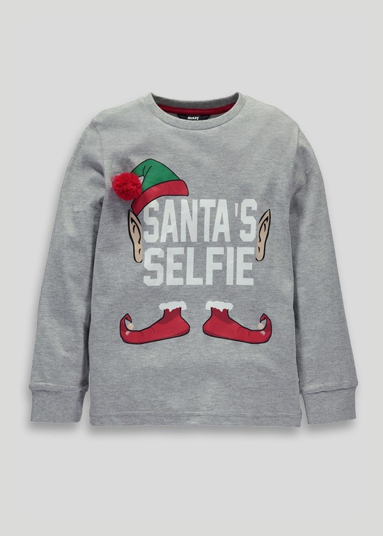 Футболка Новогодняя фирмы NEXT. Темно-серая, впереди рисунок и надписи. Состав 100% хлопок. Размер