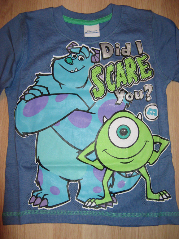 Кофточка фирмы Disney. Голубая, впереди рисунок-наклейка Монстрики из мультфильма Корпорация Монстров. Состав 100% хлопок. Размер 7-8л(122-128), 9-10л(134-140) 350руб.