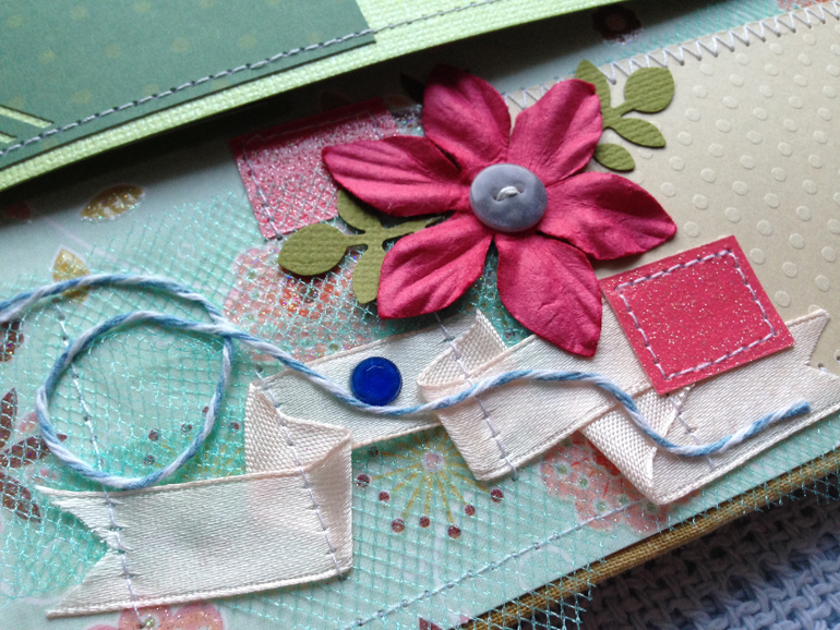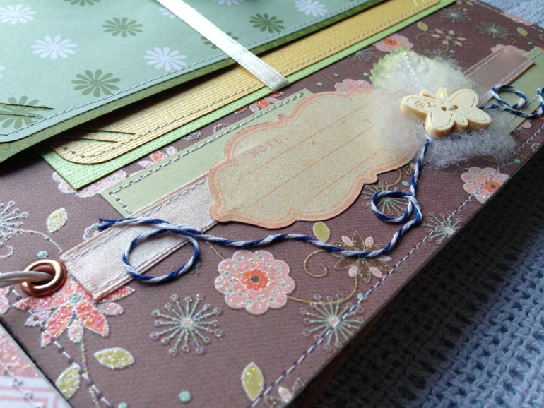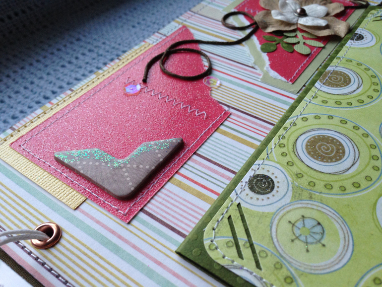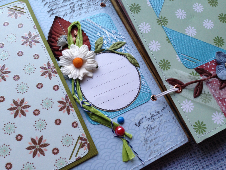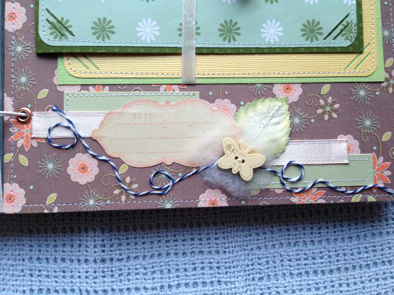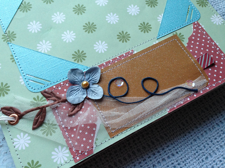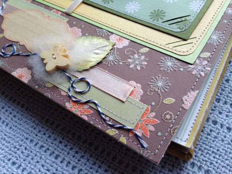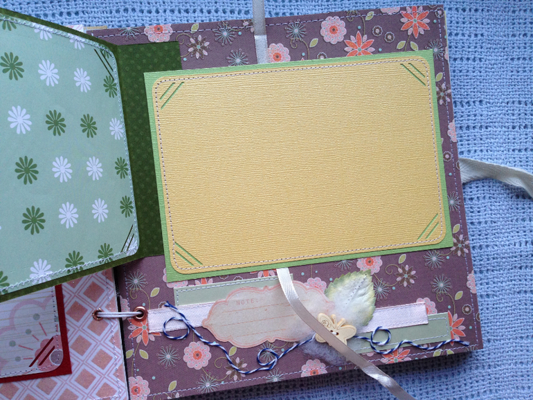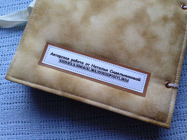 В этот раз формат 20х20 см, на 5 разворотов. Тканевая мягкая обложка, крепление на шнурке, завязывается на киперную ленту. В альбом помещается 20 фотографий 10х15 см и DVD-диск.