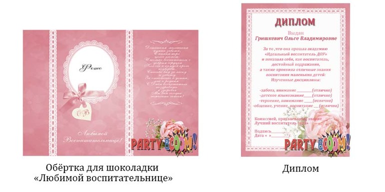 Девочки, предлагаю мини наборчики для подарков: подарочный шоколад (большой) с фото и диплом или благодарственное письмо (на выбор).