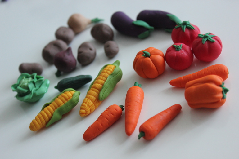 Долго думала, приобрести овощи ручной работы или заказать пластиковые. В итоге решила попробовать сделать сама из полимерной глины...
